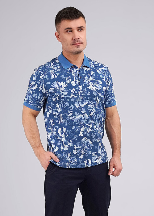 Футболка-поло мужское из фактурного полотна с яркой, оригинальной набивкой. Модель дополняется контрастными вязаными отделками,а так же фирменной фурнитурой. Изделие подойдет к любым брюкам или джинсам.