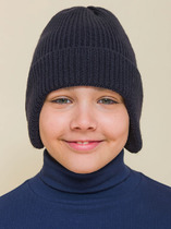 Детская шапка с творотом, выполнена ластичным переплетением. Декорирована стильной нашивкой, утепление флисом по всей голове. Отлично подходит для зимы.