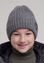 Двойная детская шапка с отворотом, декорирована нашивкой логотип и меховым помпоном. Идеально подойдёт для холодной зимы.