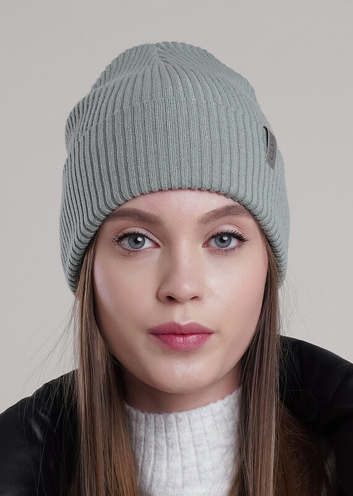 Стильная женская шапка двухслойная, с отворотом, без подклада, декорирована имиджевой нашивкой логотип. Подходит для холодной осени, тёплой зимы.