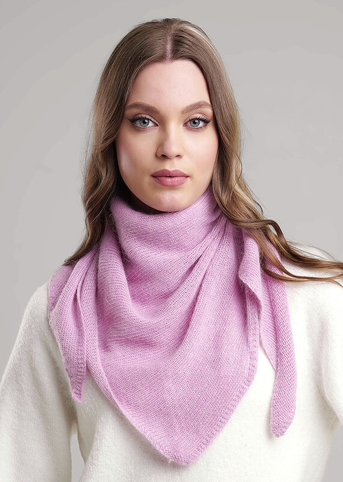 Женская шарф-косынка выполнена из пряжи с содержанием ангоры. Размеры косынки 120 х 55 см.