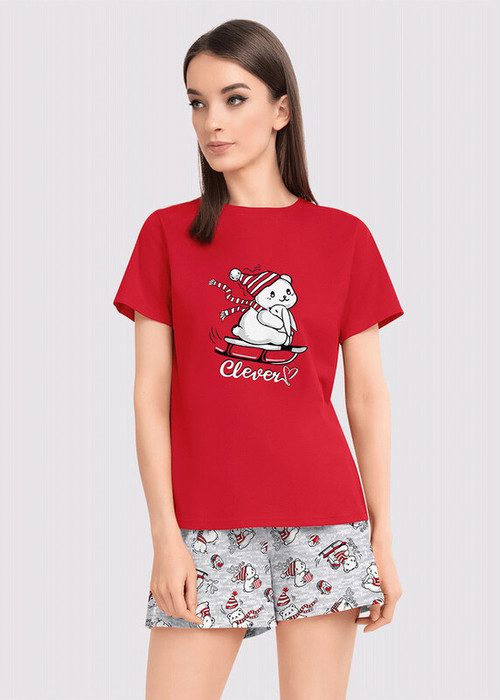 Clever Шорты женские для дома CLE LSH13-1068у молочный/красный