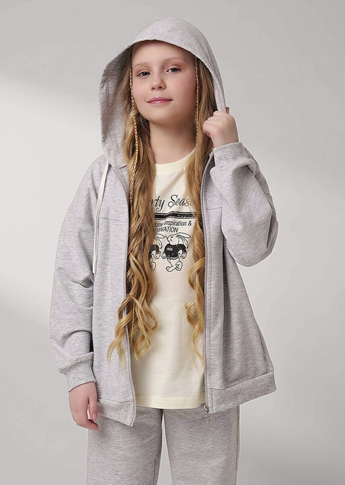 Совместные покупки Симферополь Детская одежда Кофты, кардиганы — Clever Толстовка детская для девочки CLE 757133/22уп меланж св.серый