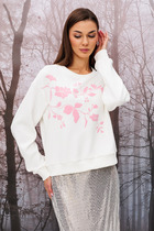 Куртка спортивная из трикотажного полотна футер,на молнии. По горловине капюшон на подкладе со шнуром. Длинный рукав со спущенной линией плеча, нашивка.По низу рукава и изделия манжеты. Спереди карман кенгуру, принт.По пройме и шву рукава открытый срез.
