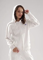 Куртка свободного кроя из трикотажного полотна интерлок на молнии. Капюшон на подкладе со шнуром. Спущенная линия плеча, длинный рукав. По низу рукава и изделия манжет из кашкорсе. По переду рельефы с карманами в швах, вшивка.Спереди принт, нашивка.