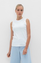 Женская укороченная майка из микрофибры с широкой бретелью. Майка с глубоким круглым вырезом. В области груди вывязан рубчик, обеспечивающий хорошую поддержку.