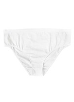Трусы бикини женские из эластичного хлопкового полотна. Обработка краев по талии - окантовка с застилом, по ноге - полуокантовка.