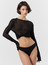 Трусы бикини женские из эластичного хлопкового полотна. По переду рез с кружевной вставкой. Обработка краев по талии и ноге окантовочная резинка.