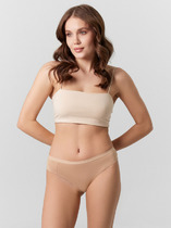 Бразилиано. Комбинированная модель: перед - однотонное хлопковое полотно, спинка и отрезной бочок - кружево. По талии - широкая атласная резинка.