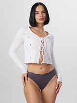 Трусы-бразилиано женские из полиамида с эластаном. По бокам вставки из кружева. Обработка краев - подклееный край. Хлопковая ластовица.