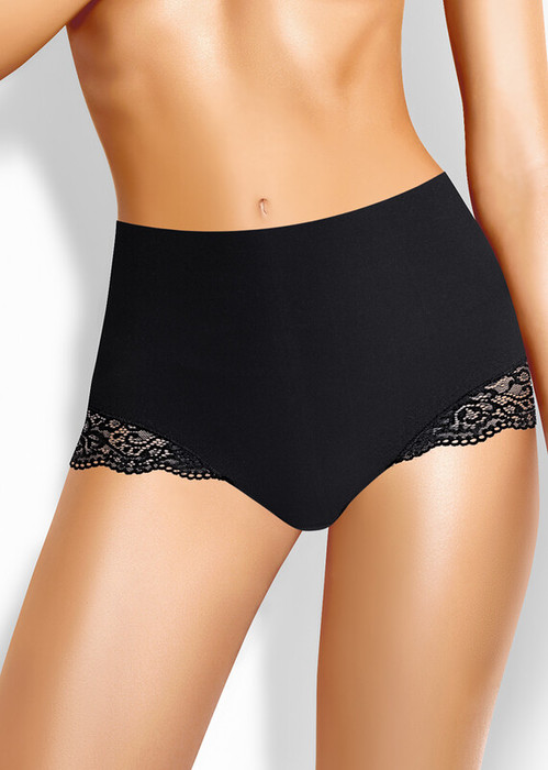 Бесшовные трусы макси комфортной посадки. По ножке настрочено широкое кружево.