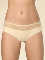 шорты комфортной посадки. Изделие имеет комбинированные с кружевом отрезной бочок и деталь спинки. По талии выполнена обработка резинкой с фестоном. Завершает дизайн небольшой атласный бант на детали переда.