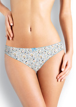 Трусы стринги комфортной посадки. В отрезном бочке -кружево, переходящее на спинку. По поясу и ножкам-обработка резинкой с фестоном. На детали переда расположен небольшой атласный бант.