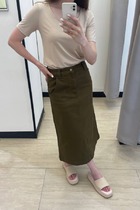 Юбка миди прямого силуэта из поливискозного трикотажного полотна джерси. По талии внутренняя резинка. На спинке средний шов с застежкой на молнию, внизу шлица.