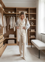 Жакет из трикотажного поливискозного полотна джерси, прямого силуэта. Однобортный с застежкой на пуговицы, по борту внутренняя обтачка. Длинный втачной рукав. Спереди прорезной карман с клапаном. По низу изделия и рукава потайной стежок.