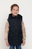 Жилет из джерси полуприлегающего силуэта, имеет английский воротник. Аккуратная баска гармонирует с вырезом горловины. Модель подходит для девочек с разными типами фигур. По линии втачивания баски, дополнена поясом на кольцах и этой же ткани.