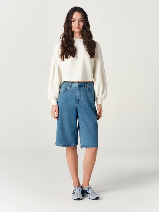 Стильные удлинённые джинсовые шорты – идеальная модель для casual-образов и стилизаций в стиле спорт-шик. Оригинальные детали подчеркнут вашу индивидуальность, а продуманная конструкция обеспечит комфорт на весь день.