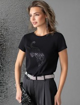 Vilatte Нарядная футболка с принтом фольгой из премиального хлопка с эластаном D