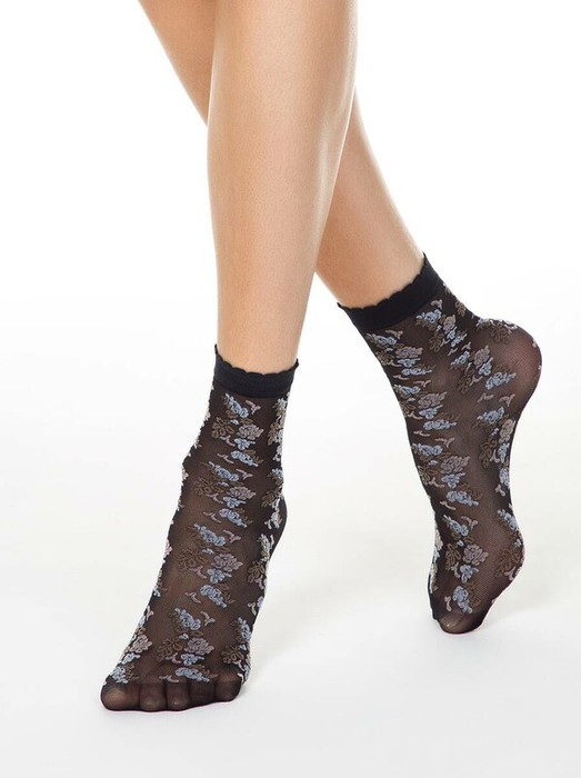CONTE ELEGANT Полиамидные CONTE FANTASY Тонкие носки с имитацией цветочной вышив