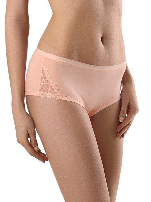 Трусы женские SHORTS со средней посадкой из однотонного трикотажного полотна. Талия обработана эластичной тесьмой плоским швом. Ножки обработаны швом вподгибку. По переду изделия по бокам вставки из трикотажного полотна "сетка".