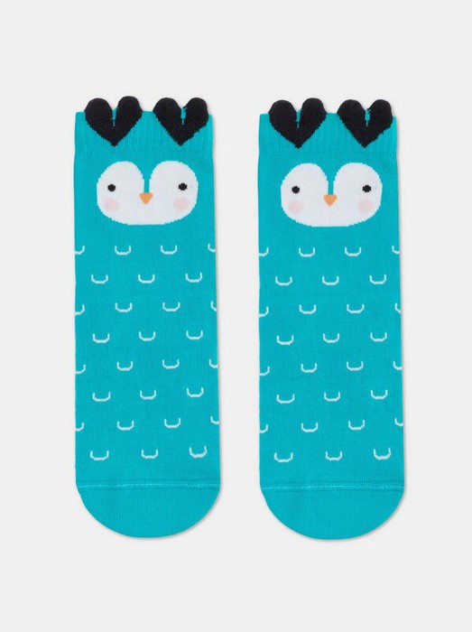 Короткие носки из хлопка с рисунками-мордашками и декоративными элементами на резинке в виде ушек. LYCRA®: носки, в составе которых есть волокно LYCRA®, превосходно растягиваются во всех направлениях, восстанавливают свою первоначальную форму раз за разом, а также обладают повышенной устойчивостью к многочисленным носкам и стиркам.