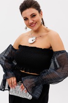 Vilatte Блузка свободного силуэта с золотистыми пуговицами D29.274 черный-белый