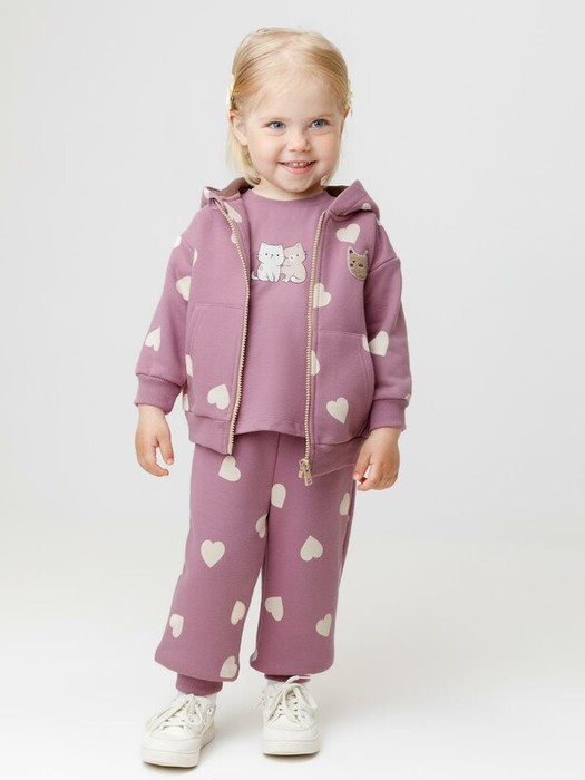 Тёплые брюки из мягкого футера с начёсом для девочки. Модель с эластичным поясом на резинке. Низ на манжетах. Изделие сохраняет цвет и форму после многократных стирок. Все трикотажные полотна производятся в соответствии с нормами швейцарского сертификата ЭкоТекс.
