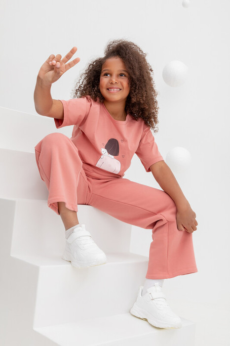 Трикотажные брюки для девочки из футера с начесом. В составе 80% натурального хлопка и 20% полиэстера, при этом полиэстер ввязан внутрь по особой технологии и не соприкасается с кожей. Эластичный пояс на резинке регулируется по ширине с помощью шнурка, внизу эластичные манжеты.