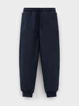 Трикотажные брюки для мальчика из петельчатого футера. Эластичный пояс на резинке регулируется по ширине с помощью шнурка, по бокам два удобных кармана, внизу эластичные манжеты.
