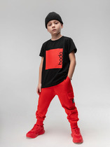 Трикотажные брюки для мальчика из петельчатого футера. Эластичный пояс на резинке регулируется по ширине с помощью шнурка, по бокам два удобных кармана, внизу эластичные манжеты.