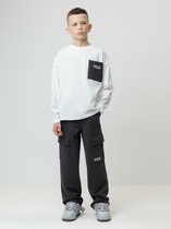 Брюки для мальчика из высококачественного петельчатого футера трёхнитки. В составе 80% натурального хлопка и 20% полиэстера, при этом полиэстер ввязан внутрь по особой технологии и не соприкасается с кожей. Модель с эластичным поясом на резинке регулируется по ширине с помощью шнурка. По бокам два удобных кармана. Оригинальный принт выполнен из стойких текстильных гипоаллергенных красителей. Изделие сохраняет цвет и форму после многократных стирок. Все трикотажные полотна производятся в соответствии с нормами швейцарского сертификата ЭкоТекс.
