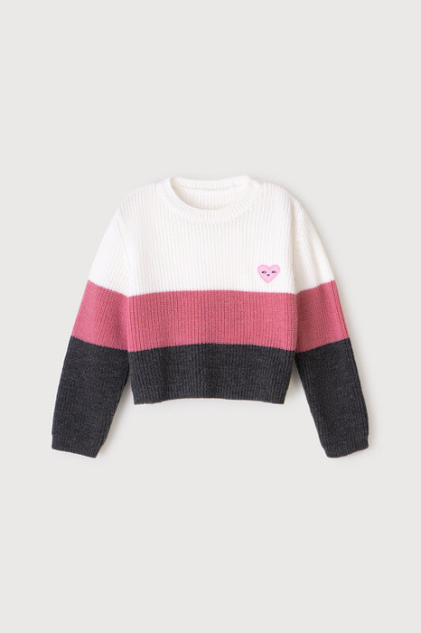 Теплый вязанный джемпер из полушерстяной пряжи в состав которой входит шерсть австралийского мериноса. Горловина, манжеты и низ изделия связаны ластиком.