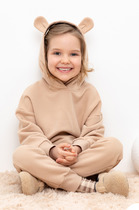Толстовка с капюшоном и декоративными ушками для девочки из футера с начесом. В составе 80% натурального хлопка и 20% полиэстера, при этом полиэстер ввязан внутрь по особой технологии и не соприкасается с кожей. Манжеты и пояс из эластичного трикотажа.