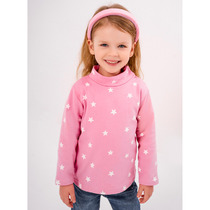 Вязаный джемпер для девочки из мягкой полушерстяной пряжи. Высокий воротник с отворотом хорошо защищает от холода. Длинные рукава с манжетами. Внизу эластичный пояс. Изделие сохраняет форму и стойкий цвет после многочисленных стирок.