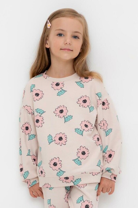 Crockid джемпер (свитшот) для дев КР 302710/бежевый,нежный цветок к549