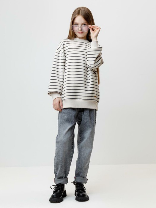Crockid джемпер (свитшот) для дев КР 302873/молочный,тем.серый,полоска к623