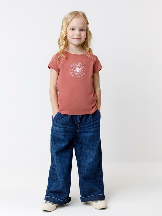 Футболка для девочки из высококачественного трикотажного полотна супрем. Оригинальный принт выполнен из стойких текстильных красителей. Изделие сохраняет цвет и форму после многократных стирок.