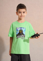 Футболка укороченная для девочки из высококачественного трикотажного полотна. Оригинальная набивка выполнена из стойких текстильных гипоаллергенных красителей. Для удобства одевания на спинке в размерах 92 и 98 есть застежка на кнопки.