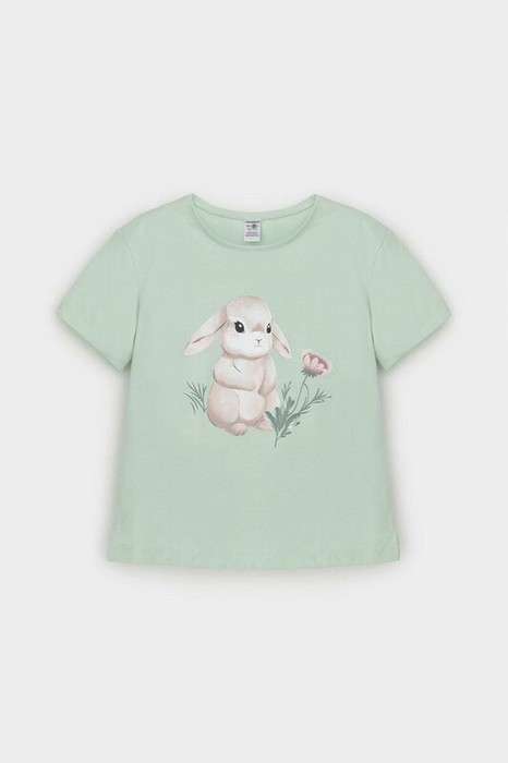 Футболка для девочки из гладкого трикотажа, произведённого из высококачественного натурального хлопка. Для удобства в размерах 92 и 98 имеется застежка на кнопки на спинке. Оригинальный принт выполнен из стойких текстильных гипоаллергенных красителей. Изделие сохраняет цвет и форму после многократных стирок.