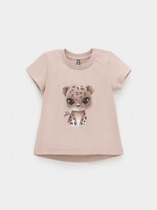 Футболка для девочки из высококачественного трикотажного полотна. Оригинальный принт выполнен из стойких текстильных гипоаллергенных красителей. Для удобства предусмотрена застежка на 2 кнопки в размерах 92 и 98.