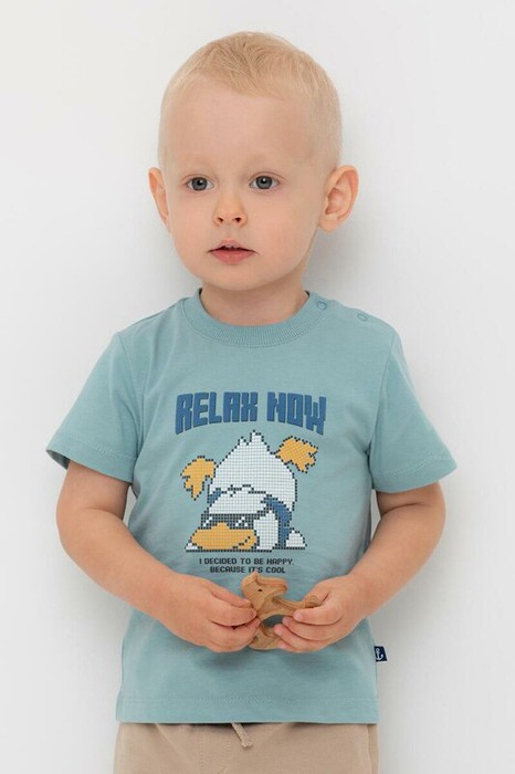 Футболка для мальчика из высококачественного трикотажного полотна. Оригинальный принт выполнен из стойких текстильных гипоаллергенных красителей. Для удобства на плече застежка на кнопки.