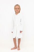 Халат с тонким капюшоном. Изготовлен из набивного хлопкового трикотажа футер петля. С помощью пояса можно регулировать посадку по фигуре. Сверху застёжка на кнопку. Края изделия обработаны мягким кантом. На боку накладной карман, уходящий в шов. Оригинальная набивка выполнена из стойких гипоаллергенных текстильных красителей. Все трикотажные полотна производятся в соответствии с нормами швейцарского сертификата ЭкоТекс.