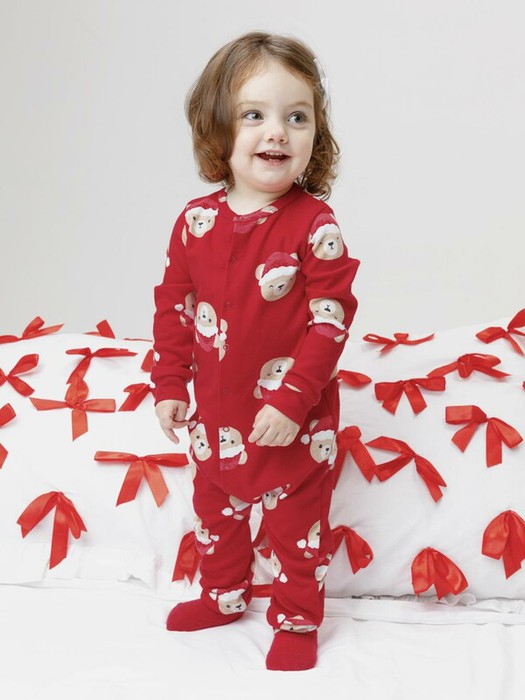 Трикотажный комбинезон из эластичного гладкого полотна интерлок. Материал произведён из высококачественного натурального хлопка. Комбинезон застёгивается спереди на кнопки. На рукавах и по низу изделия мягкие манжеты. Отлично подойдёт для создания праздничных образов или в качестве подарка малышу на Новый год и Рождество.  Оригинальная набивка выполнена из стойких текстильных гипоаллергенных красителей. Изделие сохраняет цвет и форму после многократных стирок. Все трикотажные полотна производятся в соответствии с нормами швейцарского сертификата ЭкоТекс.