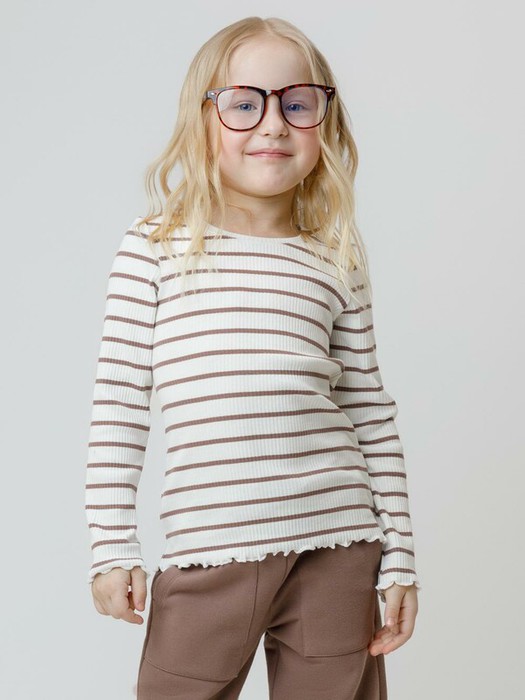 Crockid лонгслив (футболка дл.рукав) для дев КР 302820/сахар,капучино,полоска к6