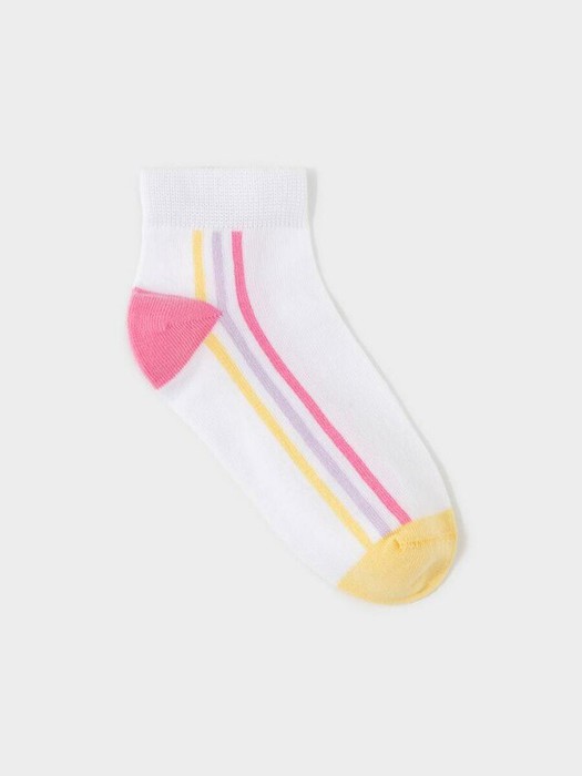 Носки короткие детские с формованной пяткой и эластичной резинкой по краю. Украшены рисунком с полосками. Изделие сохраняет форму и стойкий цвет после многочисленных стирок.