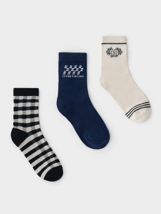 Носки с формованной пяткой и эластичной резинкой по краю. Украшены рисунком. В комплекте 3 пары. Изделия сохраняют форму и стойкий цвет после многочисленных стирок.