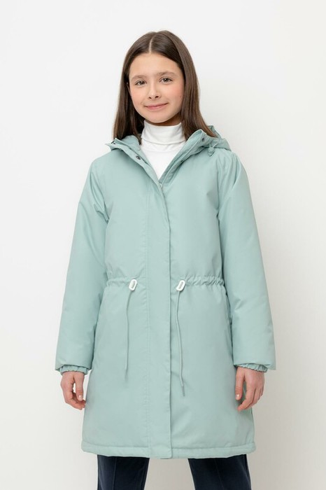 Демисезонное пальто для девочки с утеплителем SEE®: 120 г/м2. Выполнена из мембранной, фактурной ткани с дополнительной тефлоновой обработкой. Данный вид обработки предохраняет изделие от загрязнения и лучше отводит влагу. Подклад из 100% полиэстера. У изделия предусмотрена защита подбородка. Несъемный капюшон регулируется с помощью эластичного шнура со стопперами. Низ рукавов на эластичной резинке для лучшего прилегания. На талии утяжка при помощи шнура со стопперами. Боковые карманы на молнии. Во всех изделиях верхнего ассортимента для безопасности ребенка предусмотрены светоотражающие элементы.