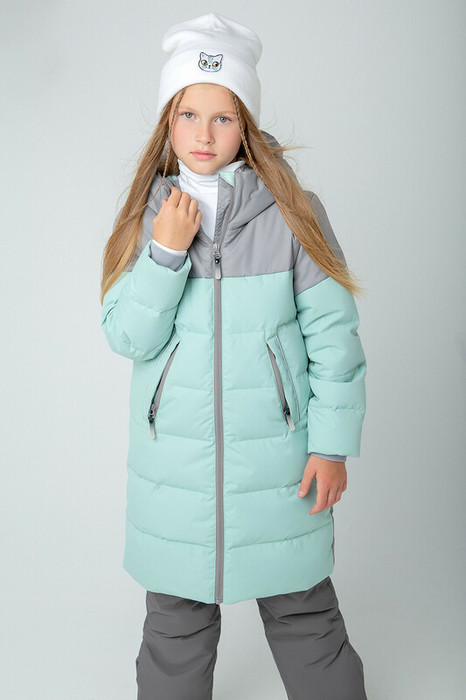 Пальто для девочки с натуральным утеплителем из гипоаллергенного гусиного пуха (70%) и пера (30%). Рекомендованный температурный режим - от -5° до -30°.
