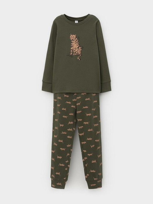 Crockid пижама дет К 1541/хаки,полосатые тигры