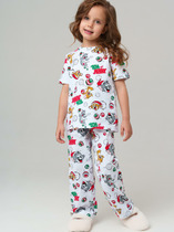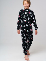 Трикотажная пижама из натурального хлопка. Джемпер с длинными втачными рукавами и брюки с эластичной резинкой в поясе. Мягкие манжеты на рукавах и по низу брюк. Оригинальная набивка выполнена из стойких текстильных гипоаллергенных красителей. Изделие сохраняет цвет и форму после многократных стирок. Все трикотажные полотна производятся в соответствии с нормами швейцарского сертификата ЭкоТекс.